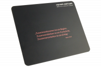 Wir fertigen für Sie Mousepads mit Ihrem Firmen- oder Vereinslogo in Ihrer Wunschfarbe. Zusätzlich können diese individuell Laserbeschriftet werden. Ein Moosgummi in Ihrer Wunschfarbe kann auf der Rückseite angebracht werden.