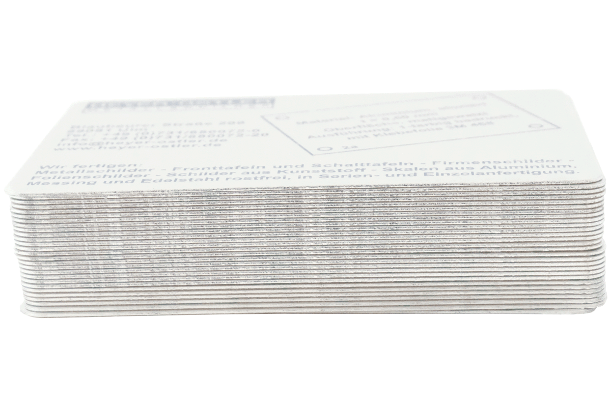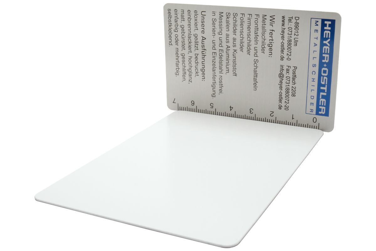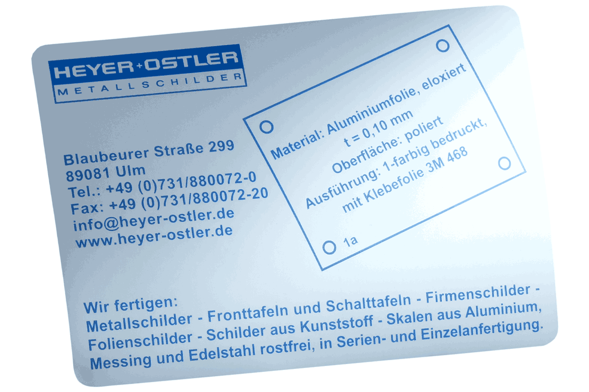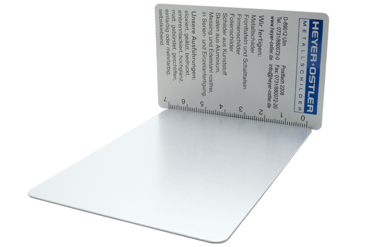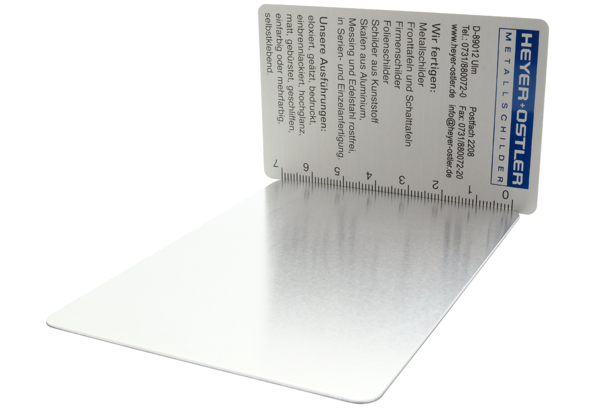 Wählen Sie bei unseren Aluminiumprodukten aus verschiedenen Ausführungen, Oberflächen und Materialstärken, bestimmen Sie die Farbgebung und bei Bedarf verschiedene Selbstklebeschichten.